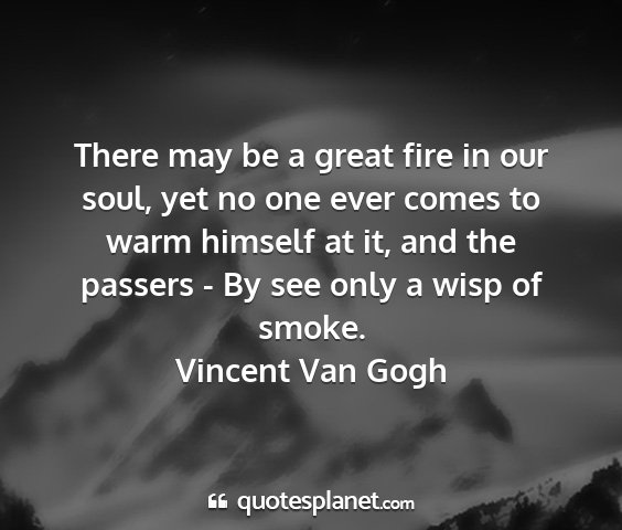 There may be a great fire in our soul, yet no one ever comes to warm himself at it, and the passers - By see only a wisp of smoke.Vincent Van Gogh
