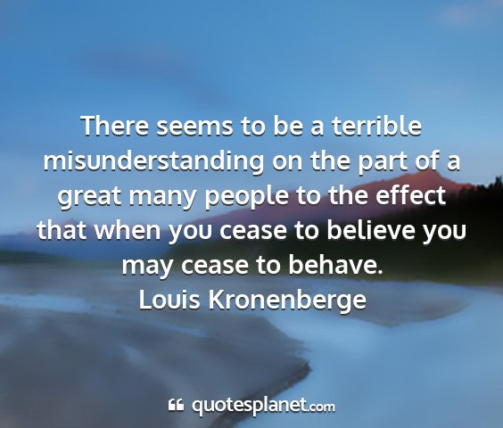 There seems to be a terrible misunderstanding on the part of a great many people to the effect that when you cease to believe you may cease to behave.Louis Kronenberge