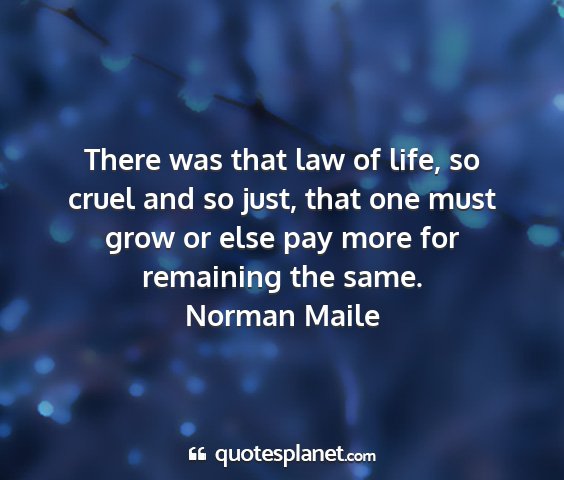 There was that law of life, so cruel and so just, that one must grow or else pay more for remaining the same.Norman Maile