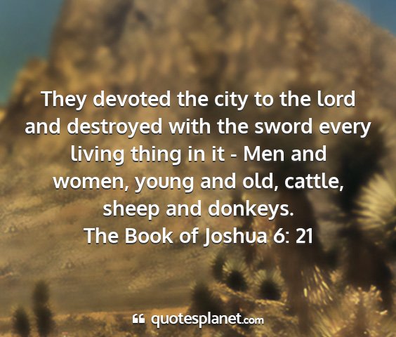 They devoted the city to the lord and destroyed with the sword every living thing in it - Men and women, young and old, cattle, sheep and donkeys.The Book of Joshua 6: 21