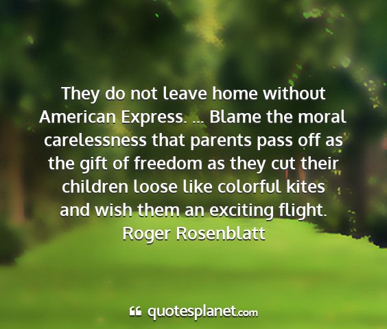 They do not leave home without American Express. ... Blame the moral carelessness that parents pass off as the gift of freedom as they cut their children loose like colorful kites and wish them an exciting flight.Roger Rosenblatt