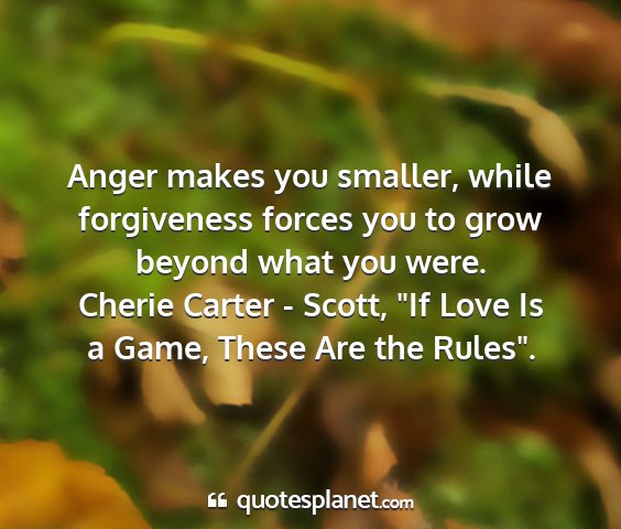 Anger makes you smaller, while forgiveness forces you to grow beyond what you were.Cherie Carter - Scott, "If Love Is a Game, These Are the Rules".