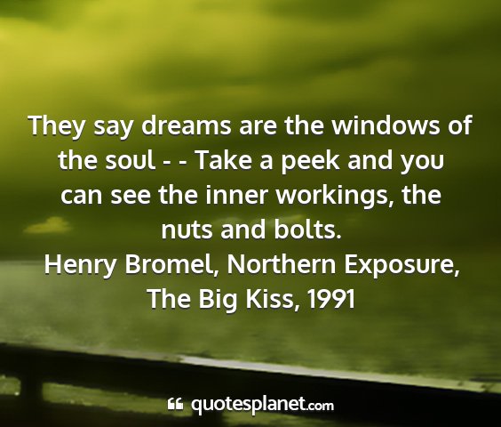 They say dreams are the windows of the soul - - Take a peek and you can see the inner workings, the nuts and bolts.Henry Bromel, Northern Exposure, The Big Kiss, 1991