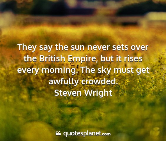 They say the sun never sets over the British Empire, but it rises every morning. The sky must get awfully crowded.Steven Wright