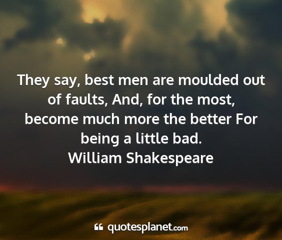 They say, best men are moulded out of faults, And, for the most, become much more the better For being a little bad.William Shakespeare