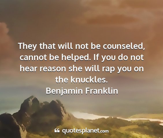 They that will not be counseled, cannot be helped. If you do not hear reason she will rap you on the knuckles.Benjamin Franklin
