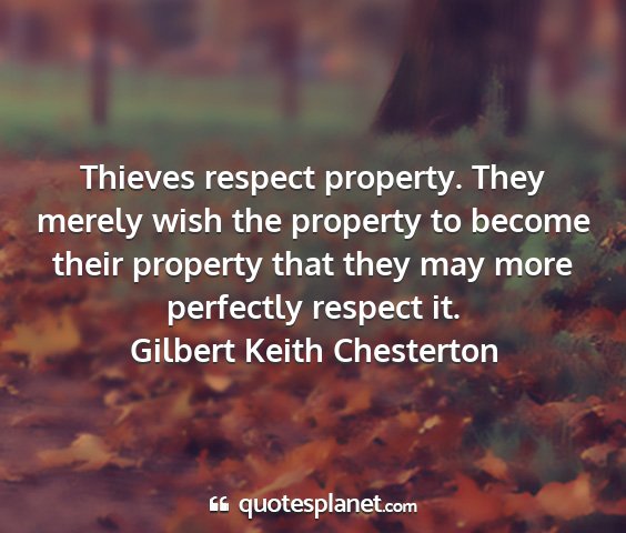 Thieves respect property. They merely wish the property to become their property that they may more perfectly respect it.Gilbert Keith Chesterton