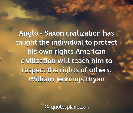 Anglo - Saxon civilization has taught the individual to protect his own rights American civilization will teach him to respect the rights of others.William Jennings Bryan