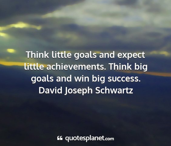 Think little goals and expect little achievements. Think big goals and win big success.David Joseph Schwartz