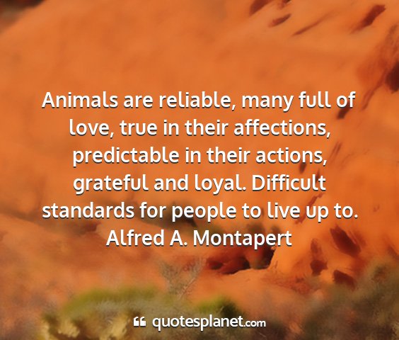 Animals are reliable, many full of love, true in their affections, predictable in their actions, grateful and loyal. Difficult standards for people to live up to.Alfred A. Montapert