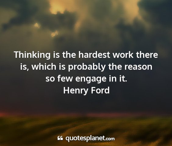 Thinking is the hardest work there is, which is probably the reason so few engage in it.