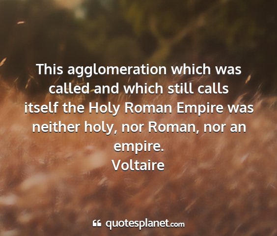 This agglomeration which was called and which still calls itself the Holy Roman Empire was neither holy, nor Roman, nor an empire.Voltaire