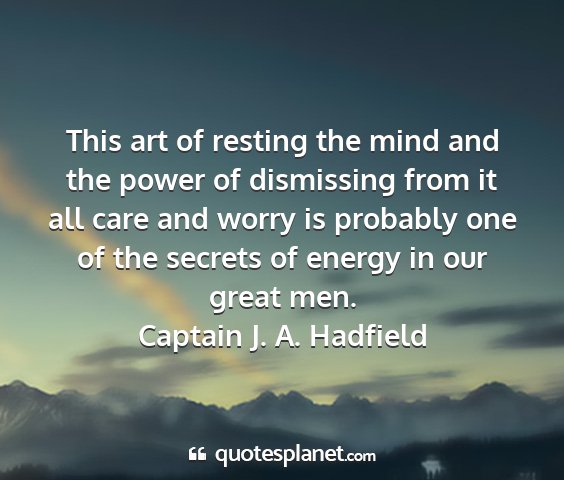 This art of resting the mind and the power of dismissing from it all care and worry is probably one of the secrets of energy in our great men.Captain J. A. Hadfield