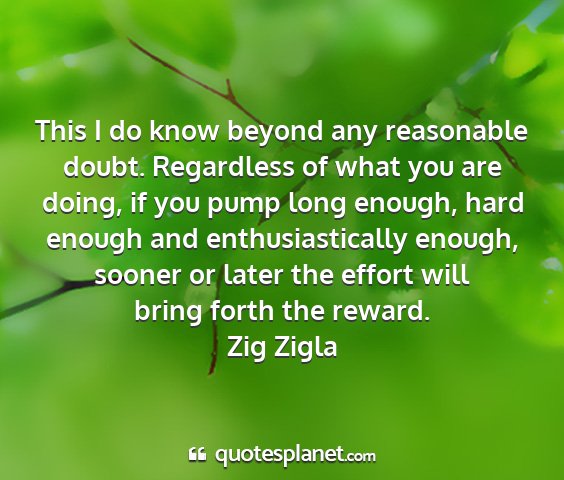 This I do know beyond any reasonable doubt. Regardless of what you are doing, if you pump long enough, hard enough and enthusiastically enough, sooner or later the effort will bring forth the reward.Zig Zigla