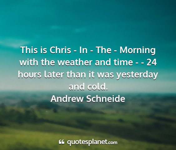 This is Chris - In - The - Morning with the weather and time - - 24 hours later than it was yesterday and cold.Andrew Schneide