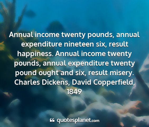 Annual income twenty pounds, annual expenditure nineteen six, result happiness. Annual income twenty pounds, annual expenditure twenty pound ought and six, result misery.Charles Dickens, David Copperfield, 1849