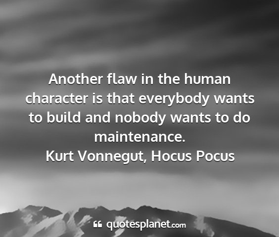 Another flaw in the human character is that everybody wants to build and nobody wants to do maintenance.Kurt Vonnegut, Hocus Pocus