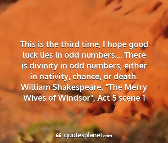This is the third time; I hope good luck lies in odd numbers.... There is divinity in odd numbers, either in nativity, chance, or death.William Shakespeare, "The Merry Wives of Windsor", Act 5 scene 1