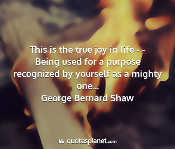 This is the true joy in life - - Being used for a purpose recognized by yourself as a mighty one...George Bernard Shaw