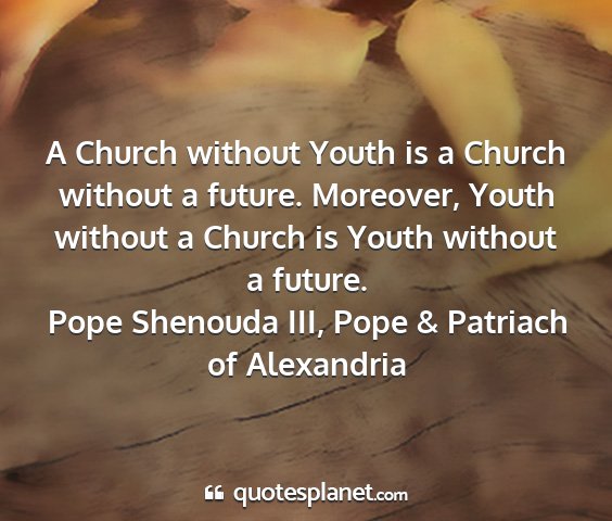 A Church without Youth is a Church without a future. Moreover, Youth without a Church is Youth without a future.Pope Shenouda III, Pope & Patriach of Alexandria