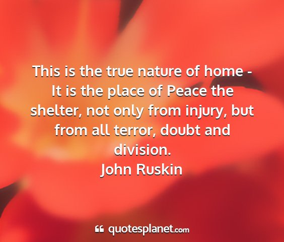 This is the true nature of home - It is the place of Peace the shelter, not only from injury, but from all terror, doubt and division.John Ruskin
