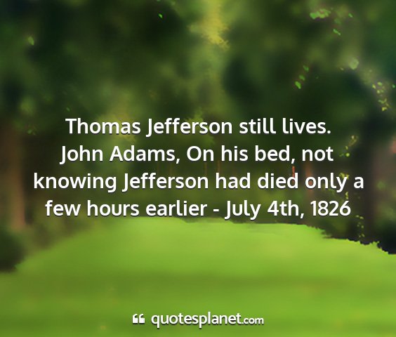 Thomas Jefferson still lives.John Adams, On his bed, not knowing Jefferson had died only a few hours earlier - July 4th, 1826