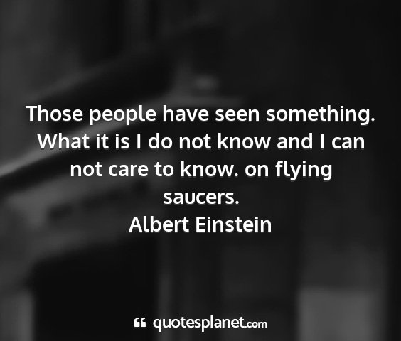 Those people have seen something. What it is I do not know and I can not care to know. on flying saucers.Albert Einstein