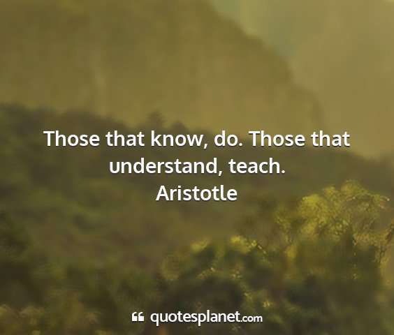 Those that know, do. Those that understand, teach.