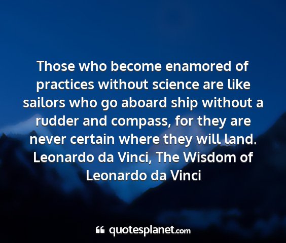 Those who become enamored of practices without science are like sailors who go aboard ship without a rudder and compass, for they are never certain where they will land.Leonardo da Vinci, The Wisdom of Leonardo da Vinci