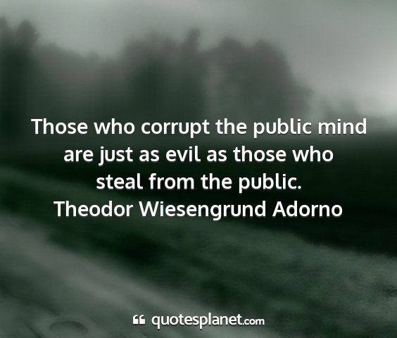 Those who corrupt the public mind are just as evil as those who steal from the public.Theodor Wiesengrund Adorno