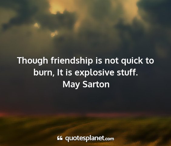 Though friendship is not quick to burn, It is explosive stuff.