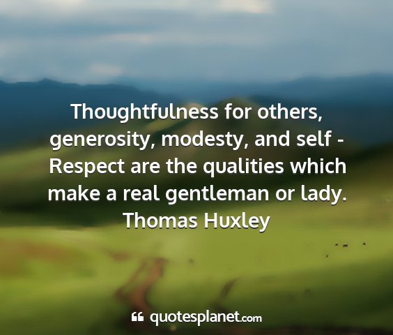 Thoughtfulness for others, generosity, modesty, and self - Respect are the qualities which make a real gentleman or lady.Thomas Huxley