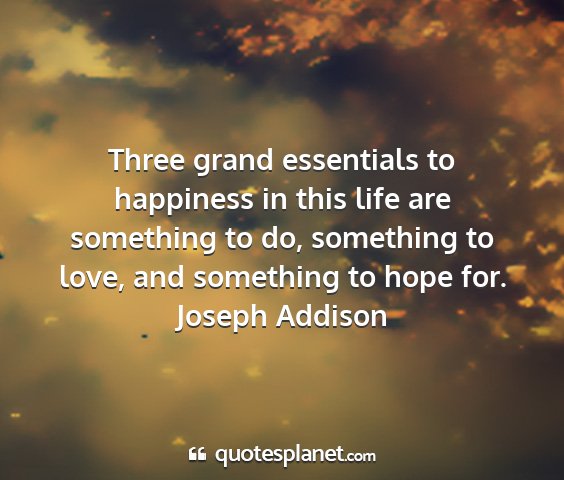 Three grand essentials to happiness in this life are something to do, something to love, and something to hope for.Joseph Addison