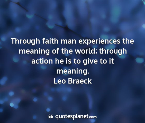 Through faith man experiences the meaning of the world; through action he is to give to it meaning.Leo Braeck