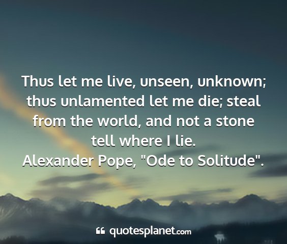 Thus let me live, unseen, unknown; thus unlamented let me die; steal from the world, and not a stone tell where I lie.Alexander Pope, "Ode to Solitude".