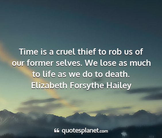 Time is a cruel thief to rob us of our former selves. We lose as much to life as we do to death.Elizabeth Forsythe Hailey