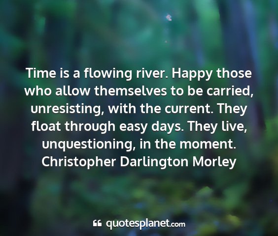 Time is a flowing river. Happy those who allow themselves to be carried, unresisting, with the current. They float through easy days. They live, unquestioning, in the moment.Christopher Darlington Morley