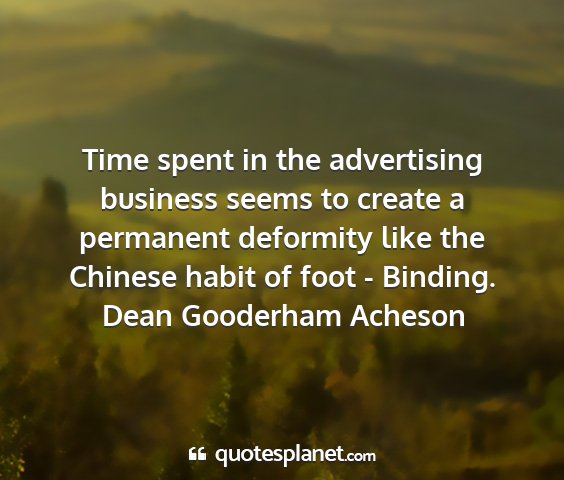 Time spent in the advertising business seems to create a permanent deformity like the Chinese habit of foot - Binding.Dean Gooderham Acheson