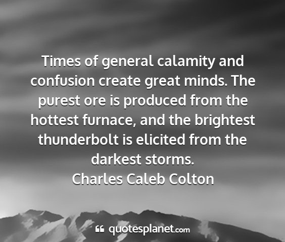 Times of general calamity and confusion create great minds. The purest ore is produced from the hottest furnace, and the brightest thunderbolt is elicited from the darkest storms.Charles Caleb Colton