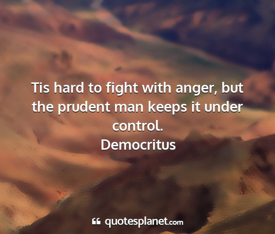 Tis hard to fight with anger, but the prudent man keeps it under control.
