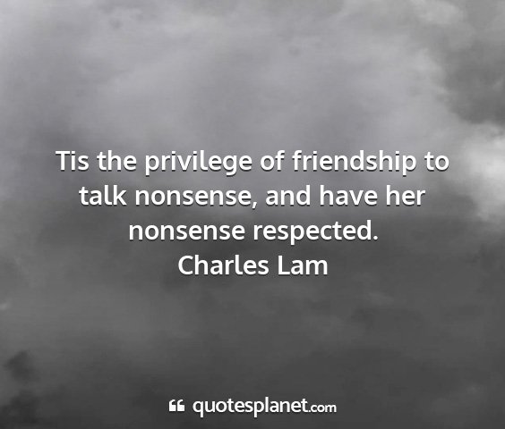 Tis the privilege of friendship to talk nonsense, and have her nonsense respected.