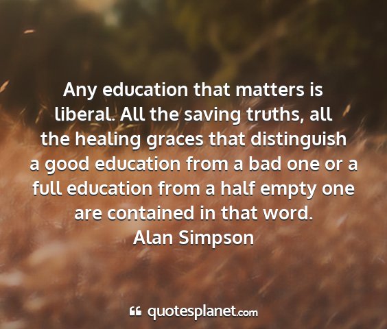 Any education that matters is liberal. All the saving truths, all the healing graces that distinguish a good education from a bad one or a full education from a half empty one are contained in that word.Alan Simpson