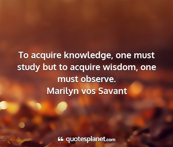 To acquire knowledge, one must study but to acquire wisdom, one must observe.