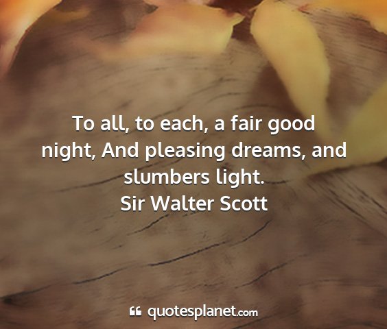 To all, to each, a fair good night, And pleasing dreams, and slumbers light.