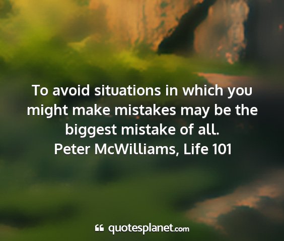 To avoid situations in which you might make mistakes may be the biggest mistake of all.Peter McWilliams, Life 101