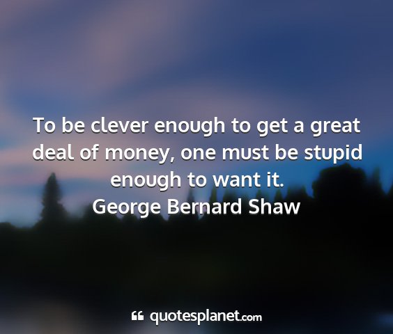 To be clever enough to get a great deal of money, one must be stupid enough to want it.George Bernard Shaw