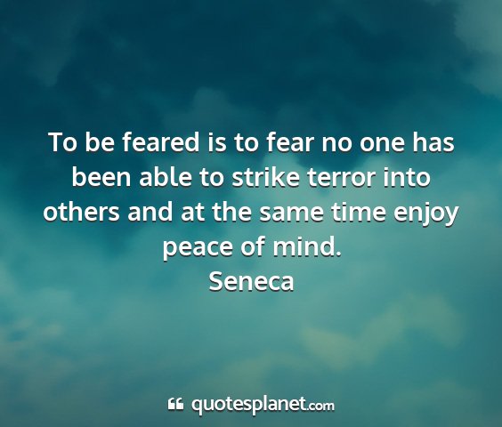 To be feared is to fear no one has been able to strike terror into others and at the same time enjoy peace of mind.Seneca