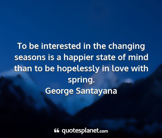 To be interested in the changing seasons is a happier state of mind than to be hopelessly in love with spring.George Santayana