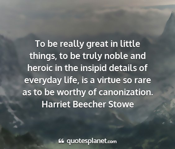To be really great in little things, to be truly noble and heroic in the insipid details of everyday life, is a virtue so rare as to be worthy of canonization.Harriet Beecher Stowe