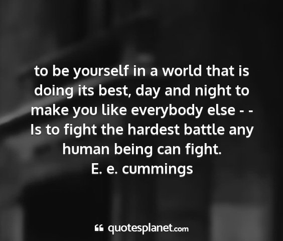 to be yourself in a world that is doing its best, day and night to make you like everybody else - - Is to fight the hardest battle any human being can fight.E. e. cummings